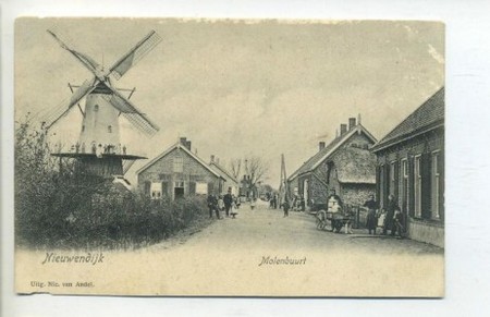Het Brabantse dorp Nieuwendijk is in de zeventiende eeuw ontstaan langs de gelijknamige dijk, die in 1646 gereedkwam. Door deze dijk kon een poldergebied worden ontgonnen - het Nieuwland van Altena - dat op het open Biesboschwater werd heroverd. In de waterkering werden drie sluizen aangebracht, die vlak bij elkaar lagen en het door windmolens aangevoerde water uit de poldergebieden loosden. In de buurt van de sluizen hebben zich de eerste bewoners van Nieuwendijk gevestigd zoals de molenaars en andere waterschapmedewerkers. Zij kregen spoedig gezelschap van enkele boeren, die op en langs de dijk gingen wonen en in de nieuwe polder landbouw- en weidegrond verwierven. Ook verschenen er in de kleine buurtschap de eerste kleine arbeiderswoningen voor de mannen die werk vonden bij de boeren en in de rietgorzen en grienden van het eenzame, ruige en bijna onbereikbare Biesboschwaterland.